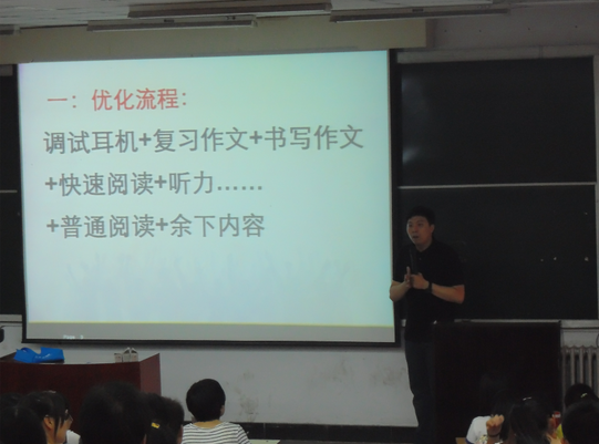 本次讲座在有效缓解同学们考前焦虑、迷茫情绪的同时,也为同学们最后的备考冲刺指明了方向,极大地提高了同学们学习英语的积极性。