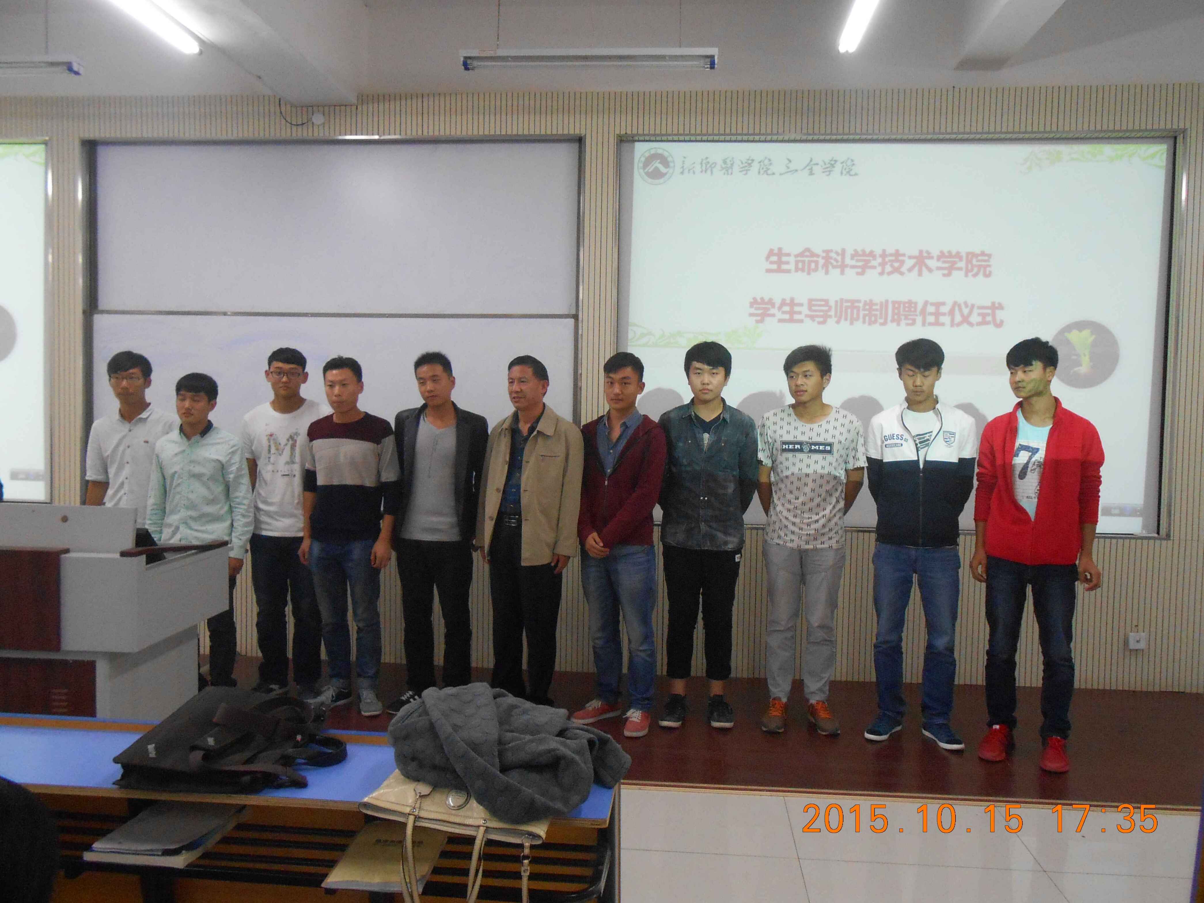 10月15日17时,437bwin必赢国际官网联合羲和书院、仁智书院在教学楼B202教师举行学生导师聘任仪式。聘任王云龙教授、刘仲敏研究员、王林嵩教授、杨保胜教授、卢龙斗教授、丰慧根教授及437bwin必赢国际官网全体教师为2015级和2014级生物技术专业、生物工程专业、生物制药专业155名学生导师。聘任仪式由437bwin必赢国际官网院长丰慧根主持,学院全体教师、羲和书院和仁智书院相关教师及全体学生参加会议。