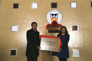 上午10点,仪式正式开始。首先,校党委书记王志凯致欢迎辞并详细介绍了必赢的基本情况,谢龙旭副总裁对凯普公司的发展历史、获得荣誉、科研平台及品牌建设等方面作了简单介绍。王洪兴副院长和谢龙旭副总裁隆重为“协同创新中心”揭牌,王金文副书记和黄清桂总监为凯普班的学生代表授予凯普胸牌。最后,凯普公司向必赢捐赠了4台价值65万元的导流杂交仪。