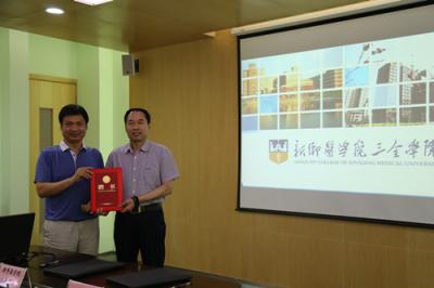 王彦杰副校长致欢迎辞并介绍了必赢的概况。王国生董事长对佐今明药业集团的发展历史、科研平台及企业文化等方面作了简单介绍。王彦杰副校长还为王国生董事长颁发了兼职教授聘书。