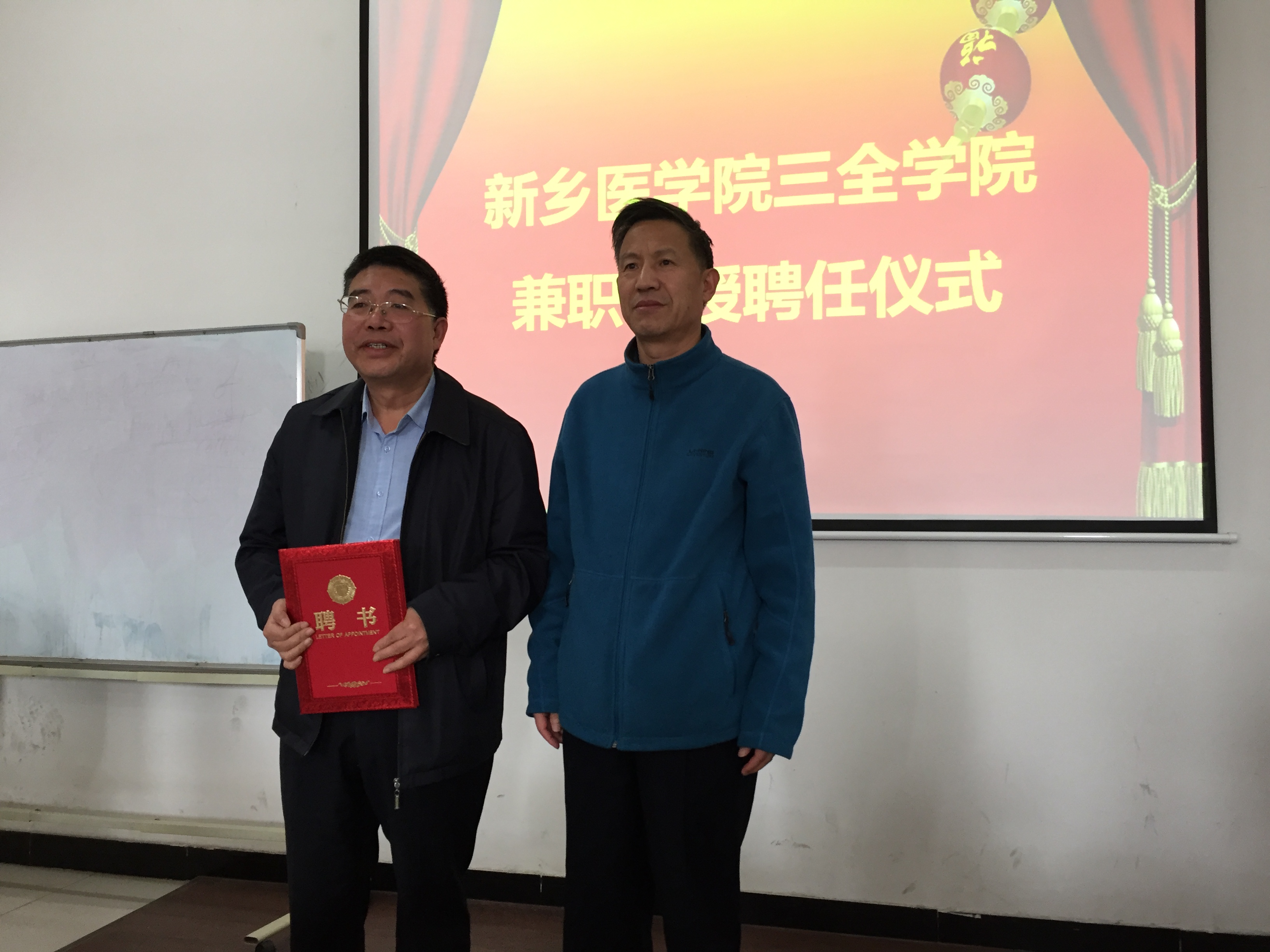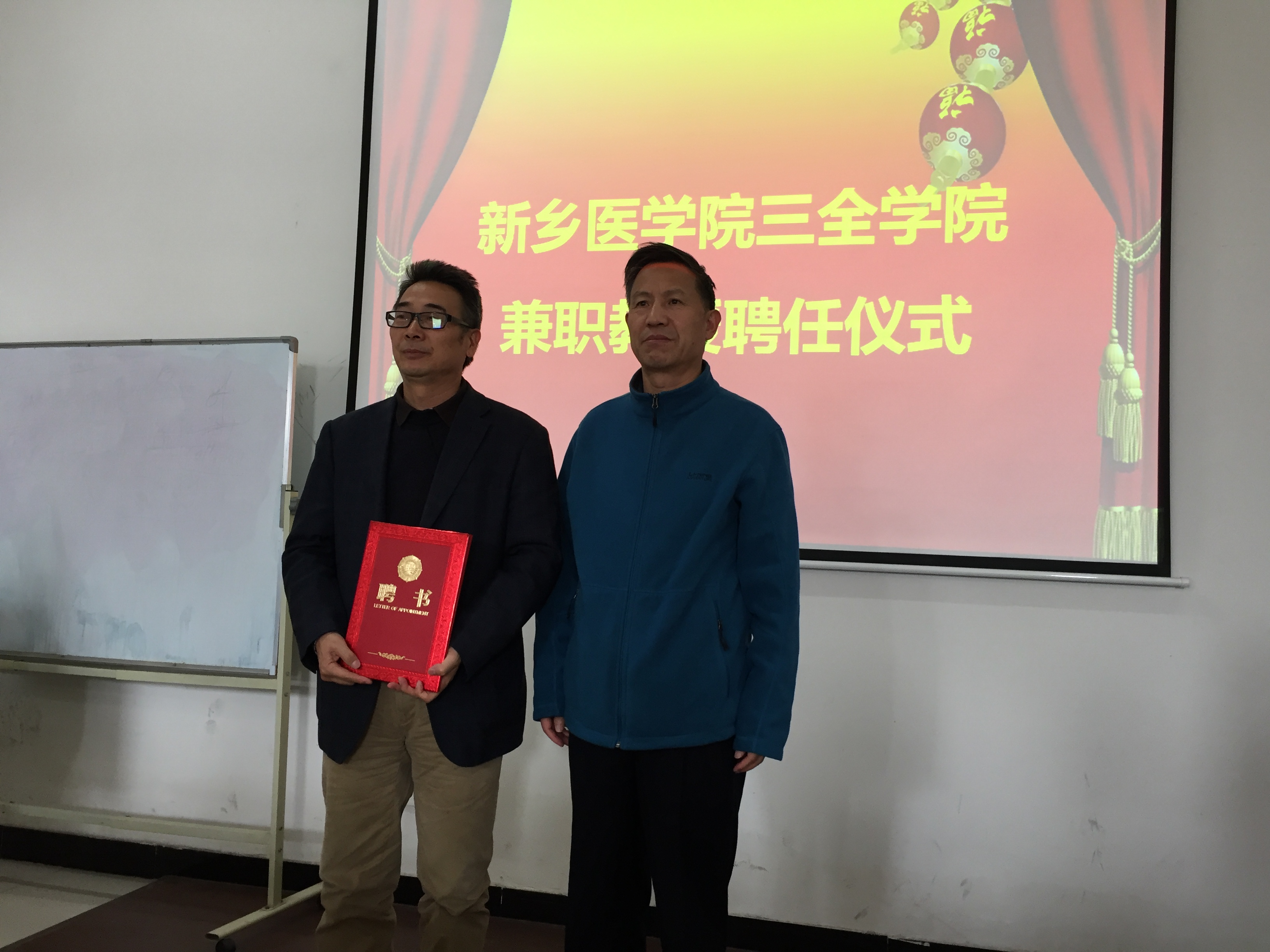 仪式开始,石晓卫副院长致欢迎词并简要介绍了河南师范大学李明军教授和新乡博凯生物技术有限公司总经理许平辉高级工程师的基本情况。他指出,两位专家的聘任是必赢向应用技术型大学转型和“人才强校”战略实施的重大举措,希望必赢师生能在两位专家的指导下转变思维方式,开拓眼界,积极参与到科研团队中去,提高自身的综合素质。随后,卢龙斗副院长为李明军教授和许平辉高级工程师颁发了聘书并合影留念。