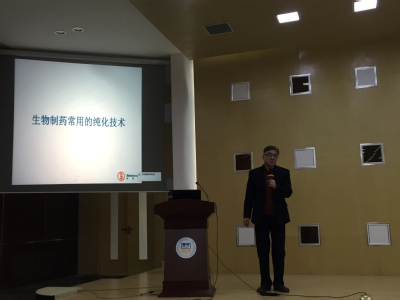 张洪博士对受聘为必赢兼职教授表示感谢,并以“生物制药的纯化技术”为题为必赢师生作专题讲座。他分别介绍了凝胶过滤、离子交换层析、亲和层析和疏水介质层析这四种生物制药的常用纯化技术的原理、优缺点以及它们在工业生产上的应用发展,并与师生亲切互动。