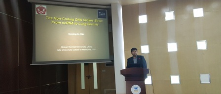 首先,余国营从人类基因组计划引出非编码序列,从自身经历引出了关注肺纤维化的过程,并围绕非编码RNA在特发性纤维化中的作用与应用开展的丰富研究,详细介绍了非编码RNA的研究前沿、特发性肺纤维化的发病机理和治疗对策;随后,他用一张生动的图片启示了大家关于自己的视野、看问题的角度与研究思路的关系,表示做科研,一定要站得高、看得远,方能做出真正有意义的成果;最后,余国营与师生在科研团队的组建与管理,科研方向的选择、科研论文的写作以及个人学习与科研道路的规划等方面展开热烈讨论。