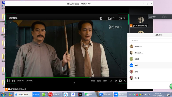 首先是大家在线上集体观了看战“疫”示范微党课“七一”专题展示——党旗飘扬、筑牢红色防火墙,学习教育系统党员师生们的战“疫”精神,共同庆祝中国共产党99周岁华诞!其次是观看红色电影《建党伟业》。这部为庆祝中国共产党建党九十周年特别拍摄的影片,在建党99周年之际再次观看,依然让我们看的热血澎湃,1921年中国共产党成立前夜这段时间内的历史故事与风云人物,让我们重温了建党的艰难与必然,牢记中国共产党的初心和使命。