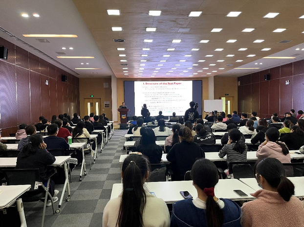本次专题讲座邀请外语系主任端木庆一教授专门针对考研英语相关问题给学生进行深入讲解。他从历年考研英语的出题思路和内容、考研英语的做题时间分配、邻近考研时如何复习、考研英语写作四个方面给大家做了剖析。台上妙语连珠,台下热情高涨,现场同学表示听过后醍醐灌顶,茅塞顿开,对未来近两个月的复习有了更加明确的方向,信心倍增。以此次讲座为始,后续还将陆续开展关于考研政治及专业课的专题讲座。