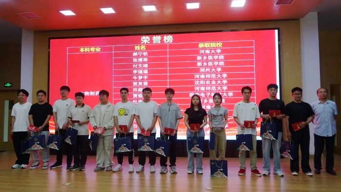 随后,会议进入颁奖环节,由关海燕老师主持。石晓卫、刘小磊和丰慧根共同为考研优秀学子颁发荣誉证书,勉励他们再接再厉,在研究生阶段再创佳绩。现场掌声不断,气氛热烈。