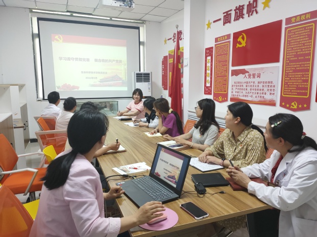 根据学校2021年全面从严治党工作会议的部署和要求,生命科学技术学学院党总支于2021年5月26日下午在生科院党员活动室开展了“学习遵守党章党规党纪 做合格的共产党员”为主题的学习活动。本次学习由组织委...