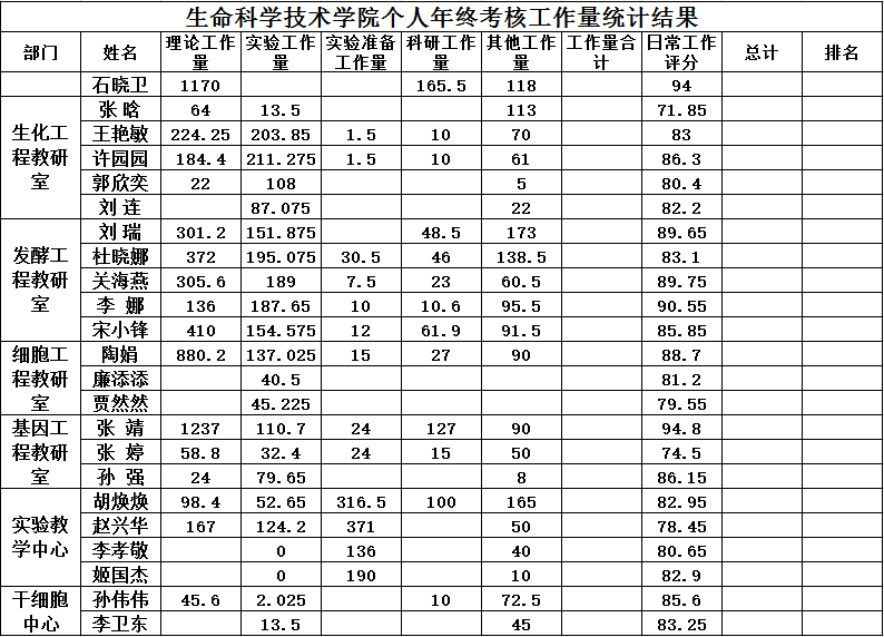 437bwin必赢国际官网个人年终考核工作量统计结果公示