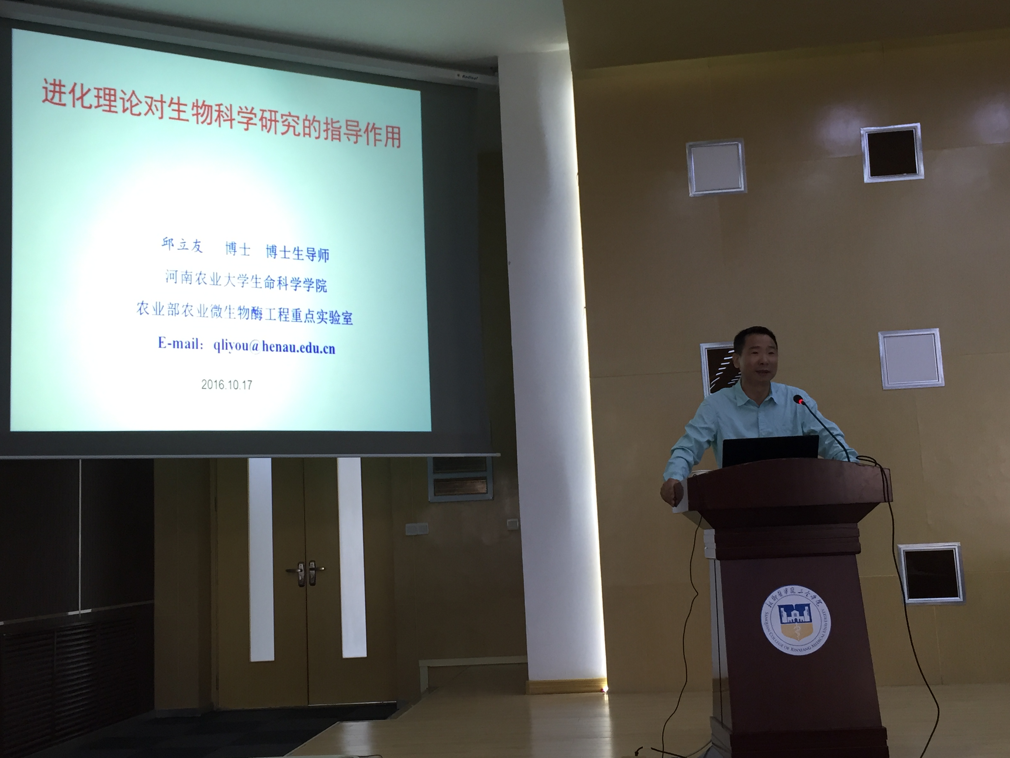 10月18日上午,河南农业大学博士生导师邱立友教授应邀来必赢做“进化理论对生物科学研究的指导作用”专题报告。报告在平原校区行政楼学术报告厅举行,由必赢卢...