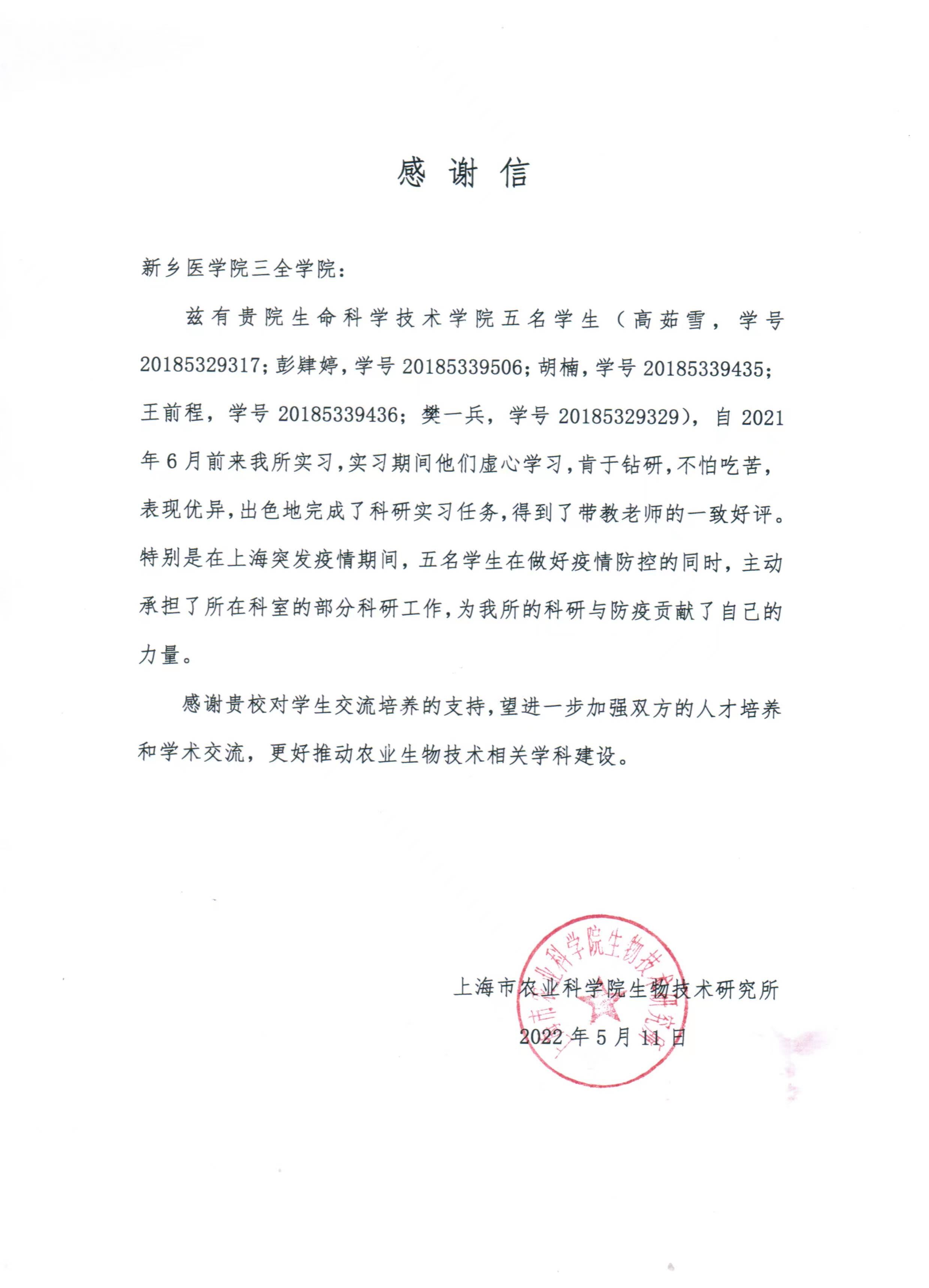 “老师,您上午给我打电话了吧?不好意思啊,我一直在做实验,才拿到手机,看到了您打电话……”这是在上海市农业科学院生物技术研究所(下称上海农科所)实习的学生高茹雪在和学校的老师交谈。5月22日,...